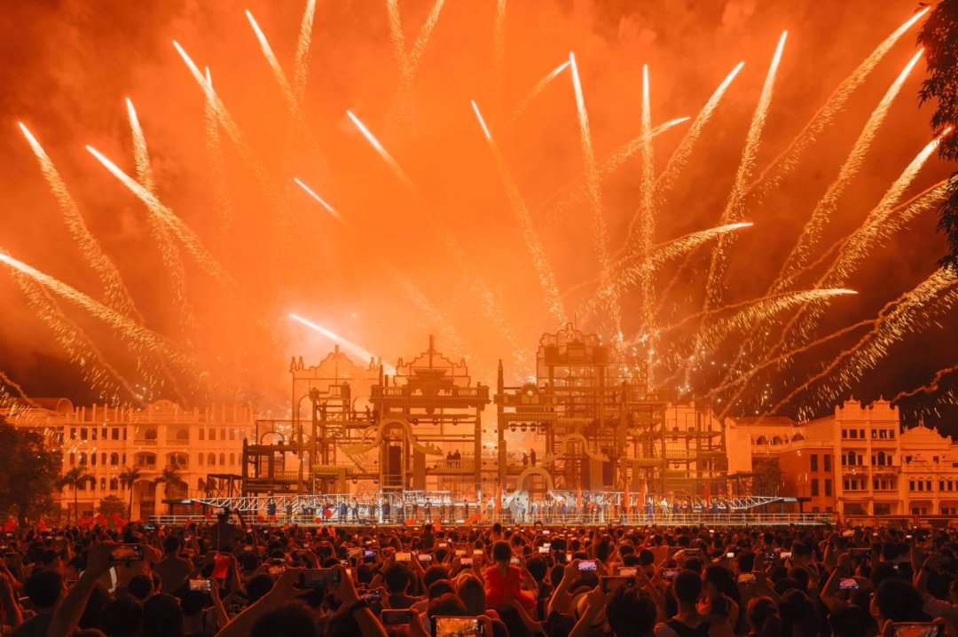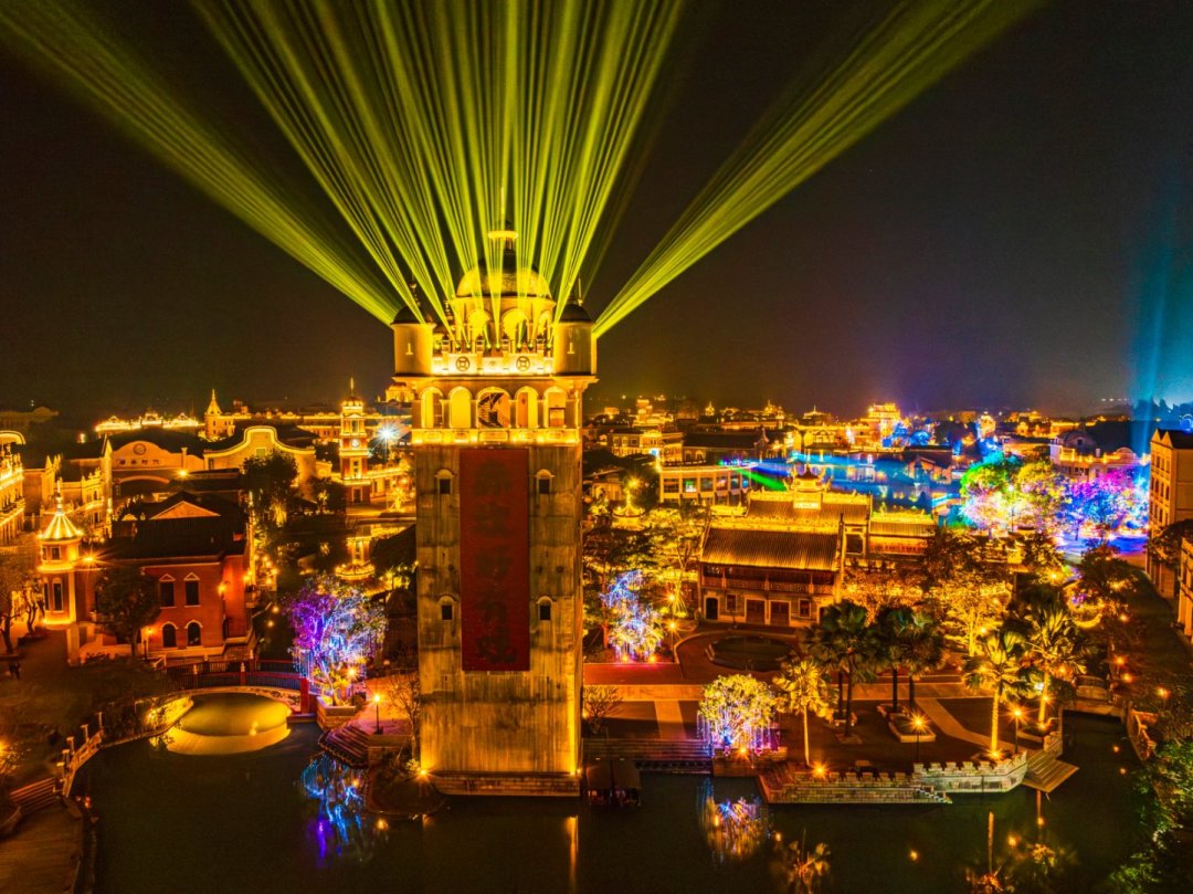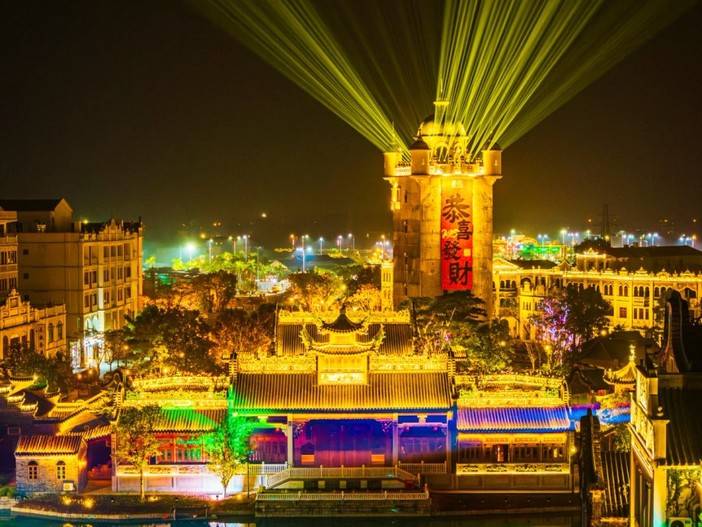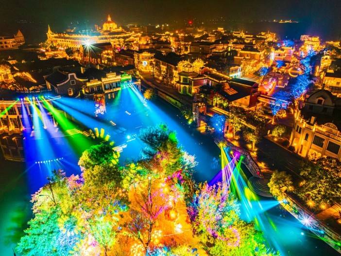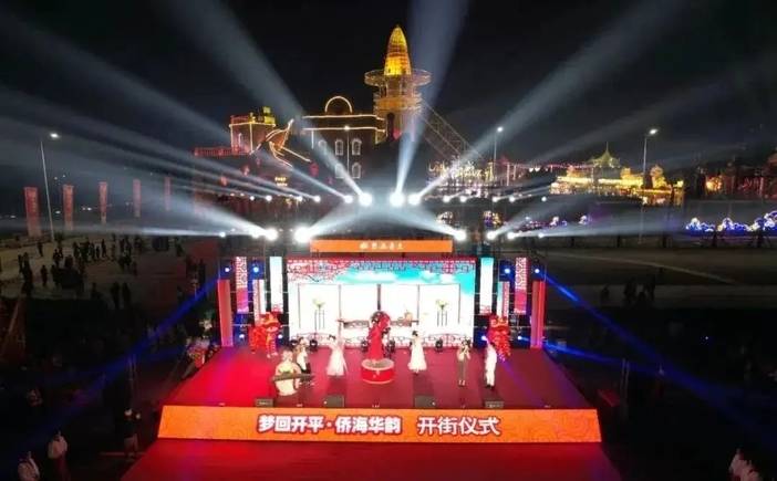 开平的“梦回开平·侨海华韵”街区让大众感受独特的华侨文化,投资约1.6亿元的【梦回开平•侨海华韵】不夜城位于广东开平赤坎古镇旁,占地3万平方米,以侨乡特色国潮风为主基调,融合文创、灯光美陈、智能夜游、艺术演绎等元素,旨在打造沉浸式休闲夜经济文旅街区,从丰富多样的游玩项目,到精彩纷呈的美人鱼等演出表演,再到五湖四海的特色美食,这座“不夜城”热闹非凡,烟火气十足;