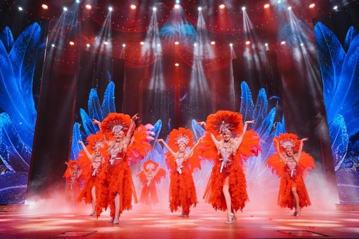 【摩登时代】这是一开往赤坎的豪华邮轮,在一曲气氛热烈的舞曲中,一群身着异域风情服饰的金发女郎,她们用激情的舞蹈欢迎大家开启一场欢乐旅程。融合歌舞、音乐剧、戏剧、魔术等多种艺术形式,结合美轮美奂的舞台布最和炫美的声光电效果,使舞台上的表演更加变幻莫测。带领观众徜徉在如梦如幻的百老汇,感受魔幻世界的魅力。