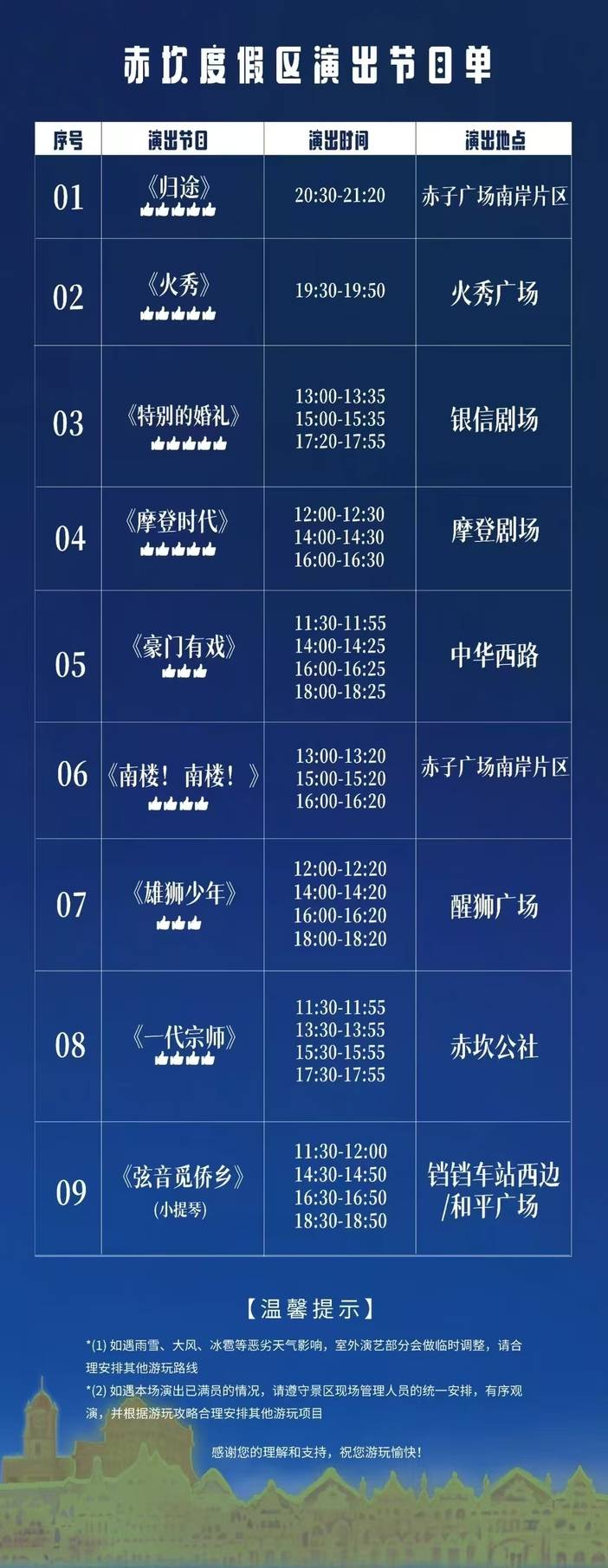 特别说明:因天气或其他不可抗力元素,部分活动项目和时间会发生变动,具体以现场实际为准!