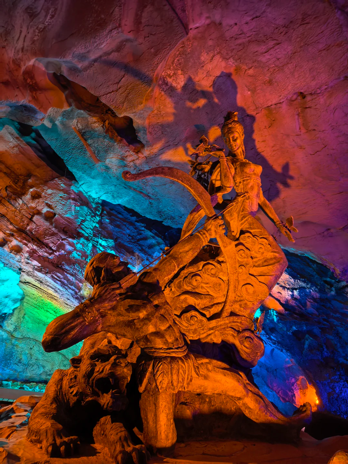 后前往游览【蒲花暗河】(时间不得低于60分钟),位于重庆市黔江区濯水镇,是一处集地下暗河、天生桥群、溶洞奇观于一体的喀斯特地貌景区,被誉为“中国最美的暗河”之一。以神秘幽深的蒲花暗河为核心,游客可乘船穿越长达1.5公里的地下河段,沿途欣赏千姿百态的钟乳石、石笋和地下瀑布,感受“三天两夜”的昼夜交替奇观(因溶洞内光线变化形成的视觉错觉)。河岸两侧的赤穴、黑龙潭等溶洞景观壮丽奇幻,而横跨峡谷的“天生三桥”更是气势恢宏,最高桥墩达100余米,蔚为壮观。