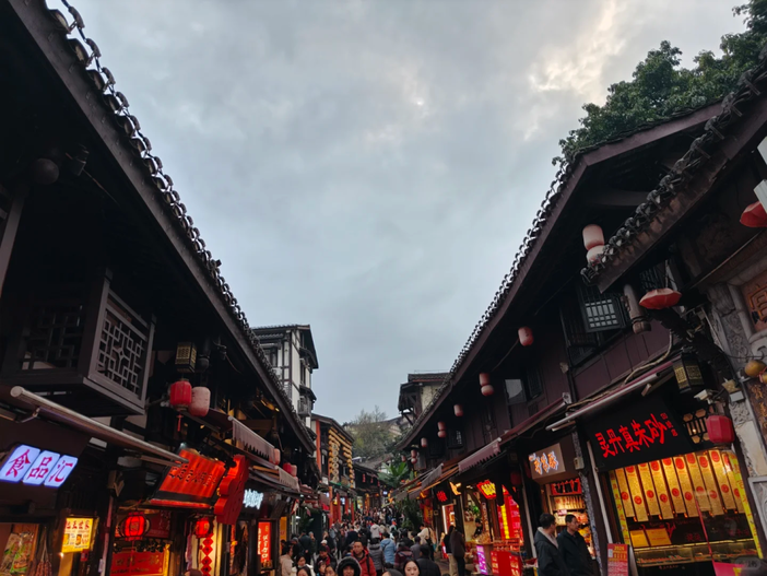 后游览国家AAAA级景区【磁器口古镇】(车程约40分钟,游览不低于1小时)。磁器口古镇位于沙坪坝区东北部,前面临江、后面靠山,拥有“一江两溪三山”的地貌。一条石板路,千年磁器口,又名“小重庆”。古有民谣“白日里千人拱手,入夜后万盏明灯”便说明了此处的繁荣,磁器口 蕴含了丰富的文化及各类小吃,走进磁器口,吃麻花,喝酸奶,品地道重庆小吃,做一次本地人。
