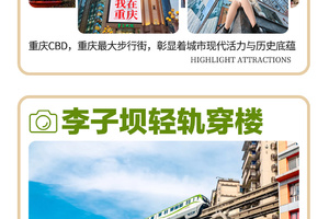 随后打卡网红车站【李子坝轻轨穿楼+乘坐轻轨体验穿楼】(游览时间不低于20分钟)。轻轨能在天上走?竟能从一栋居民楼里穿过?李子坝轻轨站体现了重庆城和山的完美结合,重庆轻轨也被网友称为神一样的交通,90度过弯,跨江穿楼,上天入地,比过山车还有意思,看轻轨穿楼而过,亲身体验这座8D魔幻城市的神奇魅力。