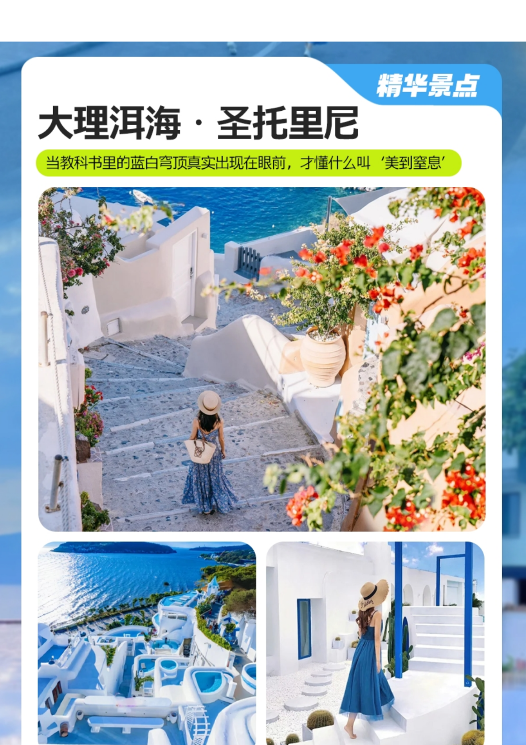 前往俗称中国最美的圣托里尼【大理理想邦】打卡游览1小时,登上(喜鹊桥)及可观赏洱海360°秀丽无限风光全景,面朝大海、春暖花开,这里有着希腊爱情海的特色建筑元素,更可拍出专属自已的时尚潮流大片,咔、咔、咔,玩转朋友圈