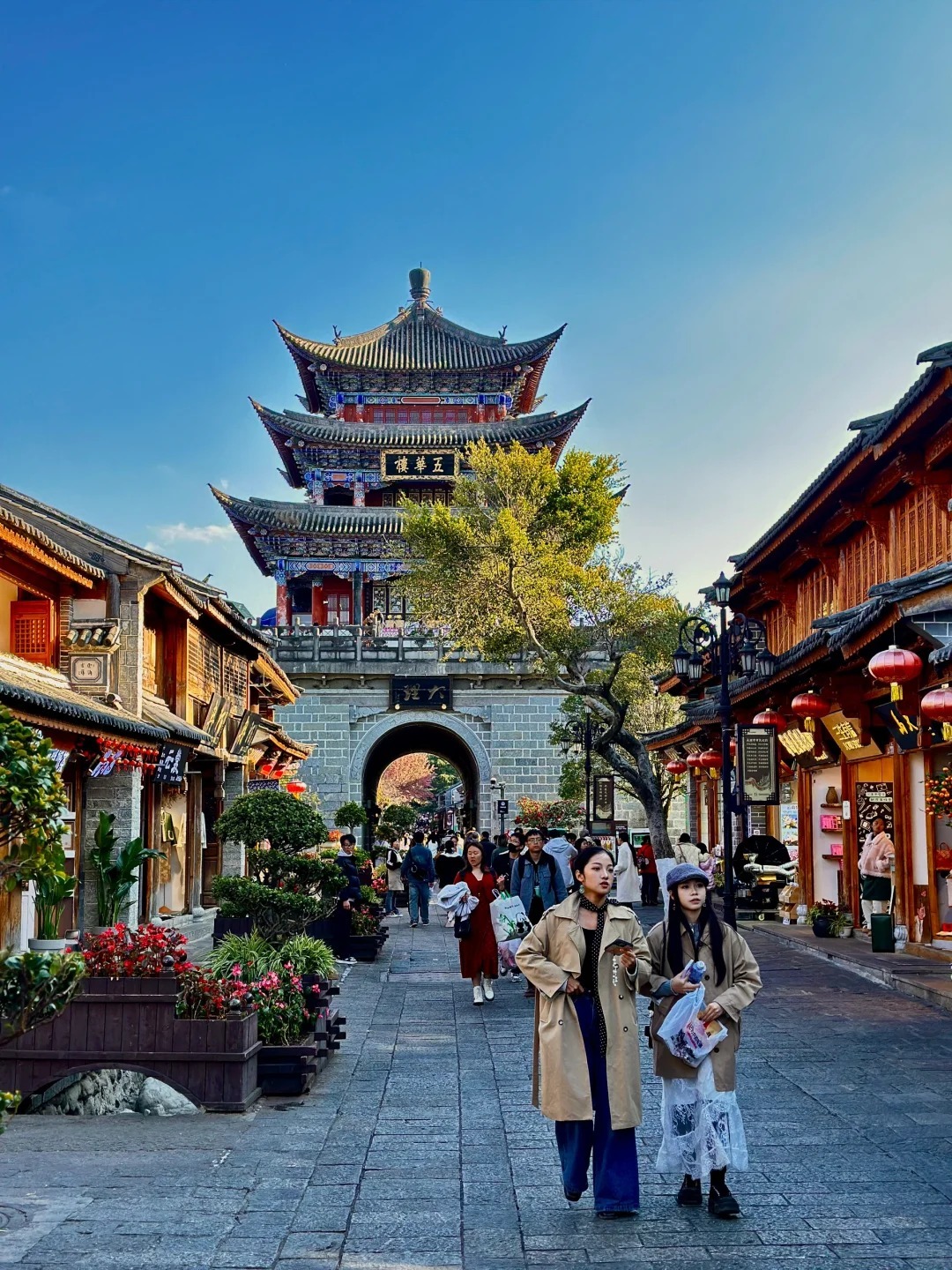 早餐后,乘车前往【大理古城-洋人街】位于云南省西部,又名叶榆城、紫城,建于明洪武十五年公元1382年,古城外有条护城河,古城四周有城墙,东、西、南、北各设一门,均有城楼,四角还有角楼。