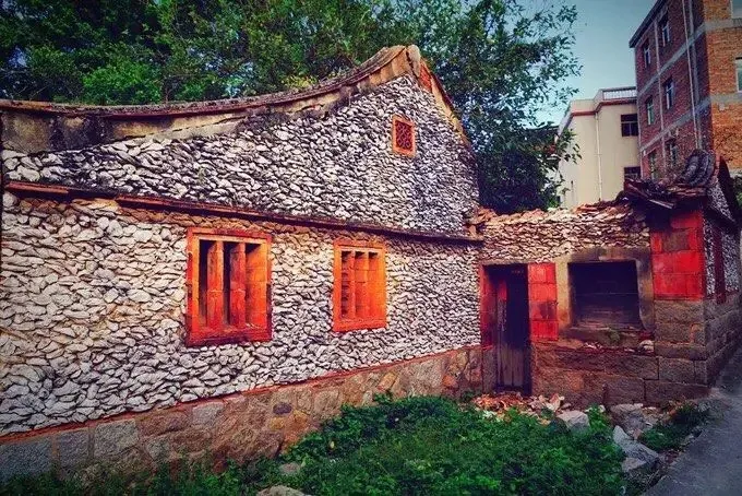 蟳埔村,蟳埔村蚵壳厝始建于宋末元初,主要特色在于蚵壳、砖石砌成墙,大面积的灰白色蚵壳与花白色花岗石、红色砖构成一幅幅色彩对比强烈、富有美感的图案,那一堵堵的蚵壳如片片鱼鳞,十分好看。