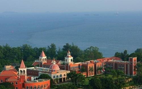 依山傍海:厦门大学背靠万石植物园,一侧是南普陀寺,一侧是白城沙滩,与世界文化遗产鼓浪屿隔海相望。校园建筑依地势而建,错落有致,充分利用了地形的起伏和变化。从高处俯瞰,建筑与自然景观相互融合,仿佛是从山海之间自然生长出来的一部分。