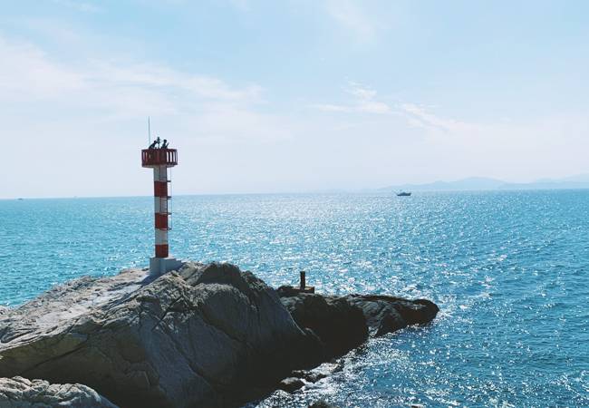 近岸多礁石,海风拂面使你感到夏日的清爽,