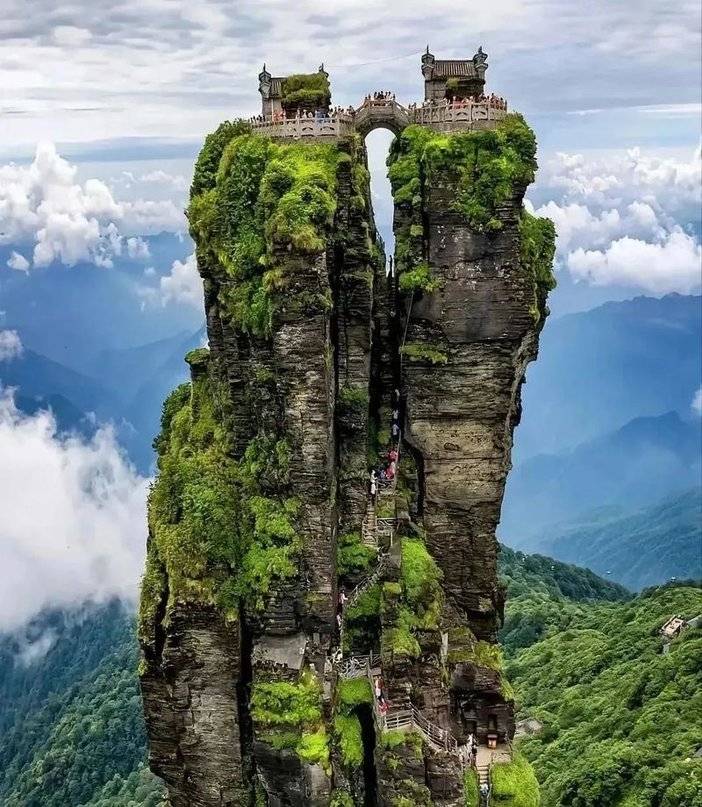 蘑菇石:梵净山的标志性景点之一,高达10米,形如蘑菇,大自然的鬼斧神工,看似摇摇欲坠,实则傲然挺立14亿年。