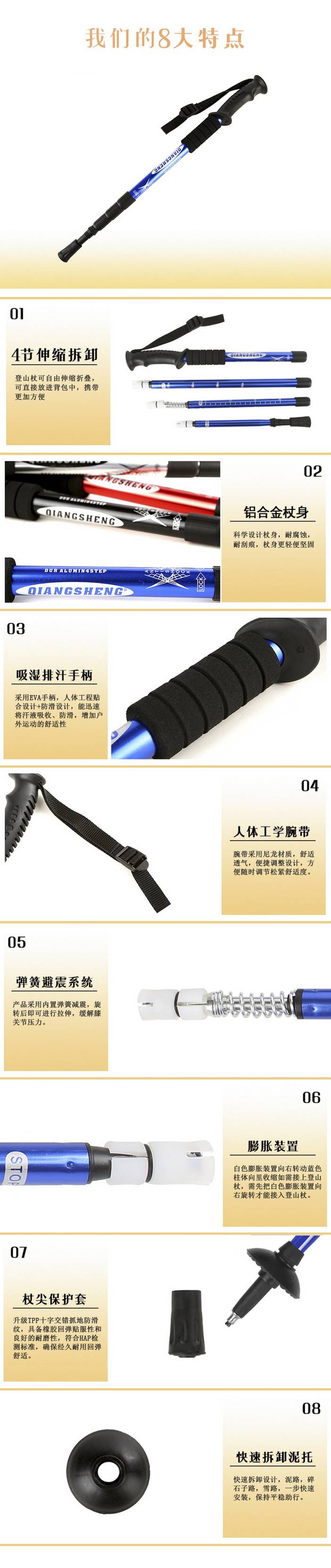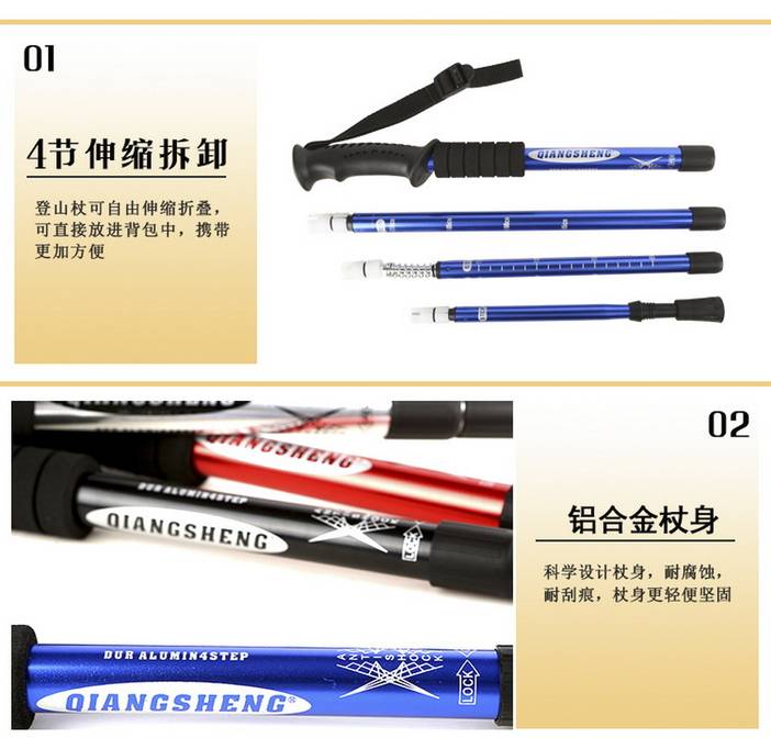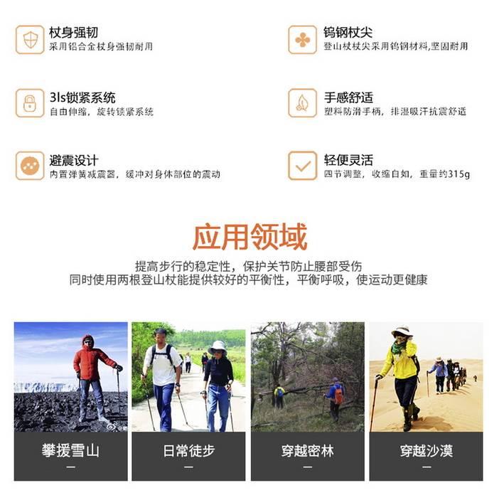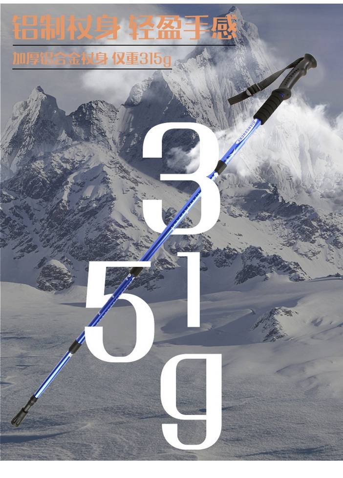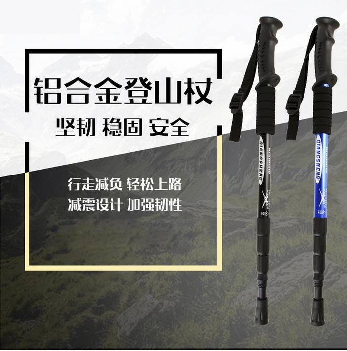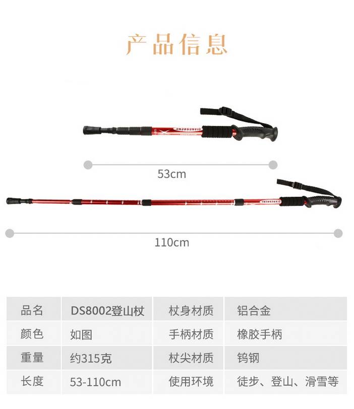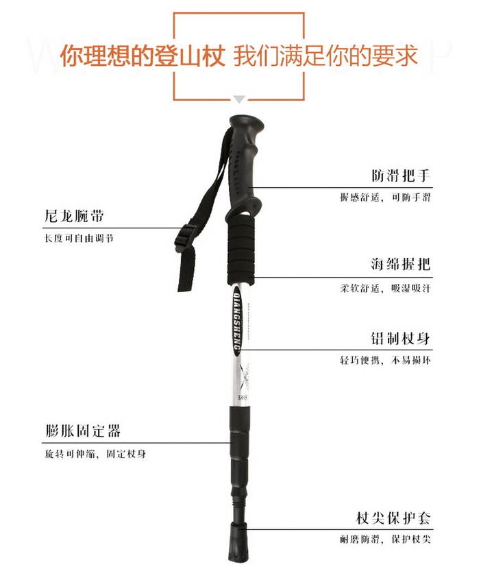 荒野四节直柄登山杖户外旅游手杖徒步杖铝合金伸缩杖泥托钨钢杖尖适应全地形DS8002 [复制链接]