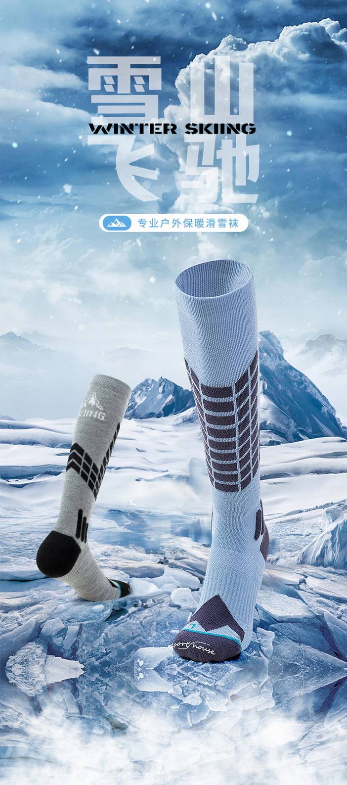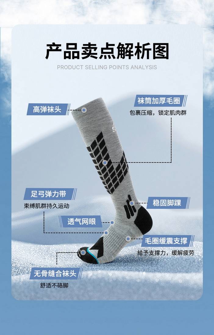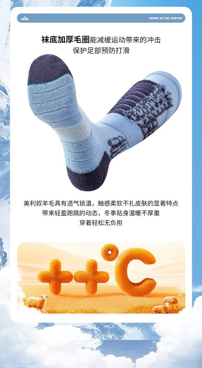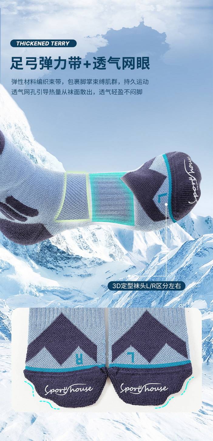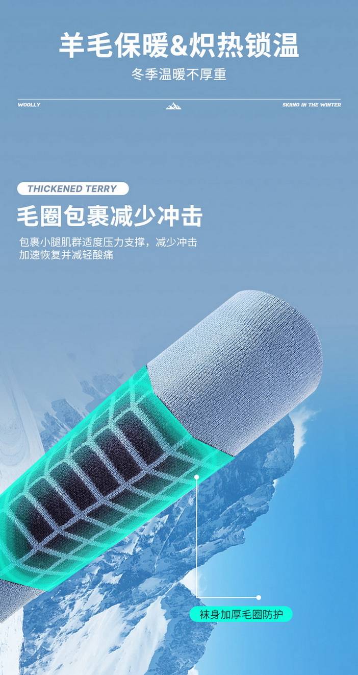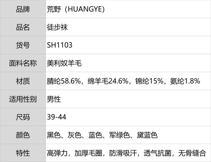 荒野美利奴羊毛袜男士专业户外运动袜徒步登山滑雪袜成人加厚长筒保暖毛巾底SH1103 [复制链接]
